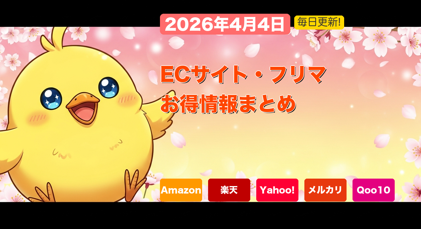 今日の主役はやはりLINEギフトのからあげクン70%OFFです。まずはLINEギフトで手軽に確実に得をして、その後に各ECサイトで日用品や必需品を比較検討する流れがおすすめです。「コンビニで即得」+「ECサイトで計画的に購入」をセットで動くと、4月の出費をかなり抑えやすくなります。今日中にLINEギフト、Amazon、楽天、Yahoo!、Qoo10、au PAY マーケットをひと通り確認して、お得なチャンスを逃さないようにしましょう。